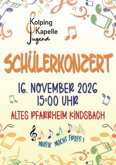 Auch in diesem Jahr findet das alljährliche Schülervorspiel der Kolpingkapelle Kindsbach am Sonntag, den 16.11.2025, um 15:00 Uhr im Alten Pfarrheim in Kindsbach statt.