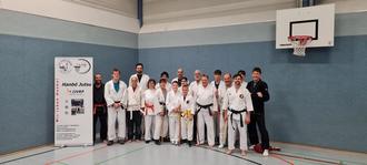 Von 14 bis 17 Uhr erklärte der Dezent, Bernd Mohr, Träger des 5. Dans JuJutsu, den Teilnehmern zunächst die Neuerungen im Prüfungsprogramm für die Gürtelprüfungen in dieser Sportart. Dem folgten ausgewählte Übungen aus dem aktuellen Prüfungsprogramm.