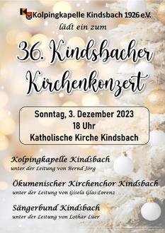 Die Kolpingkapelle Kindsbach lädt zum 36. Kirchenkonzert am Sonntag, 3.Dezember 2023 in die katholische Kirche in Kindsbach ein.