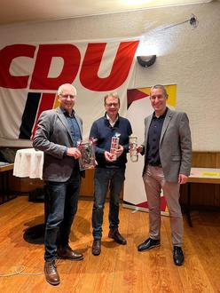 Bürgermeister Stephan Mees und der Vorsitzende des CDU Ortsverbandes Bann, Jan Schneider, bedankten sich bei Dr. Gebhart mit einem kleinen Präsent für den informativen und spannenden Bürgerdialog.