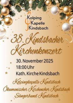 Die Kolpingkapelle Kindsbach lädt in diesem Jahr zum 38. Kindsbacher Kirchenkonzert ein. Das Konzert findet am ersten Adventssonntag, dem 30.11.2025, um 18:00 Uhr in der katholischen Kirche Kindsbach statt und bildet damit wie jedes Jahr den musikalischen Auftakt zum Advent.