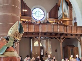 So klangen am vergangenen Sonntag kräftige Männerstimmen durch die Valentinuskirche und bereicherten die Eucharistiefeier, die von Pfarrer Stenz zelebriert wurde. Die Dirigentin Maria Wolf hatte festliche Lieder eingeübt und der Gesang wurde von Organist Kreibiehl harmonisch begleitet. (ge)