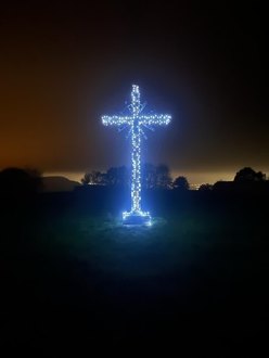 Pünktlich zum 1. Advent war der Kameraden- und Freundeskreis der Bännjer Enzian- und Heimatfreunde mit dem aussagekräftigen Motto: ,,Wir für Bann!" in gleich zwei Arbeitseinsätzen unterwegs. So wurde das an Ostern geweihte neue Gipfelkreuz auf dem Hausberg beidseitig mit LED-Lichterketten versehen, was den Effekt erzeugt, dass der höchste Berg der Sickingerhöhe gerade bei Dunkelheit zu einem wahrlich mythischen Ort verzaubert wird. Das Kreuz erzeugt eine Strahlkraft, einen hinreißenden und faszinierenden gigantischen Anblick. Ebenso war die Flurgewanne ,,Im Wäldchen" Anlaufstelle für eine weihnachtliche Operation. So wurde dort wieder ein wunderschön geschmückter Weihnachtsbaum neben dem Wegekreuz aufgestellt. Ziel ist es den vielen Spaziergänger*nnen und Familien mit Kindern, welche täglich diese beliebte Route einschlagen, eine kleine Freude zu bereiten. Der Freundeskreis wird sich aus extrem verwurzelter Verbundenheit und Liebe zu seiner Heimatgemeinde Bann auch weiterhin uneigennützig und aktiv an der Dorfgemeinschaft beteiligen. Die Enzian- und Heimatfreunde Bann wüschen allen eine schöne und besinnliche Advents- und Vorweihnachtszeit und natürlich viel Freude an unseren Aktionen zur Dorfverschönerung, dem Zusammenhalt und des Miteinanders.