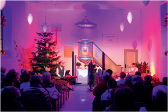 Am Freitag, 28.11.2025, gab die im Raum Kaiserslautern bekannte Sängerin, Gesangspädagogin und Stimmtherapeutin Sabrina Roth mit musikalischer Begleitung ein begeisterndes Konzert in der Protestantischen Kirche Linden. Zahlreiche Besucher*innen wurden dabei vorweihnachtlich eingestimmt. Wir danken allen, die im Vorfeld des Konzerts die Kirche geschmückt und bei der Durchführung des Konzerts mitgeholfen haben.
