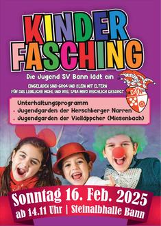 Eingeladen sind groß und klein, ob jung oder alt, die Jugendabteilung veranstaltet am Sonntag den 16 Februar ab 14.11 Uhr wieder ihren Kinderfasching in der Steinalbhalle in Bann.