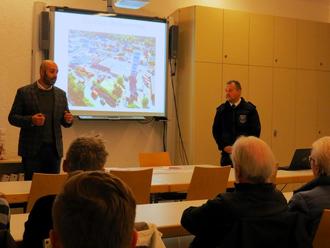 Bei dem kurzweiligen Vortrag von Thomas Jung zum Thema „Plötzlicher Stromausfall im Haushalt“ verdeutlichte er, dass uns ein solches Szenario nicht nur im Haushalt, sondern auch im Büro, der Medizin oder im Verkehr durch den Ausfall von Ampeln lahmlegen könne. Für den Notfall im Haushalt empfahl er Batterien und Akkus, haltbare Lebensmittel, und gegebenenfalls auch Notstromaggregate bereitzuhalten. Wasser, Hygienemittel und Bargeld solle man für den Notfall ebenfalls vorrätig haben, so der Wehrleiter. Im Ernstfall habe die Feuerwehr Notstromaggregate zur Verfügung, um nach 30 Minuten mit Fahrzeugen in den Stadtteilen präsent zu sein, um dort Notrufgeräte betreiben zu können. Über Generatoren bestünde auch die Möglichkeit Kraftstoffe für den Fuhrpark der Wehr bereitstellen.