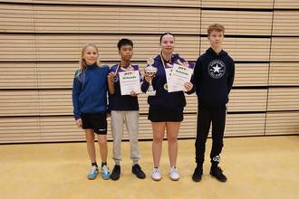 Neben Charlotte schaffte es auch Phong Tripipat im Doppel U11 auf das Treppchen. Er wurde dritter. Auch Valentin Götzinger und Max Müller schlugen sich gut und erreichten das Achtelfinale. Hier war dann allerdings Endstation, weil das Losglück den beiden sehr starke Konkurrenz bescherte. Mit einer Pfalzmeisterin „im Gepäck“ konnte man trotzdem stolz die Rückreise nach Bann antreten.