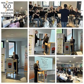 Im Mittelpunkt des Programms stand die Laudatio von Knut Böhlke, der keine klassische Chronik hielt, sondern vier zentrale Erfolgsfaktoren für ein Jahrhundert Vereinsbestehen herausstellte. Die besondere Kontinuität des Vereins zeige sich unter anderem darin, dass es in 100 Jahren nur drei Vorsitzende und vier Dirigenten gab. Besonders gewürdigt wurden der langjährige Vorsitzende Bertram Berberich sowie Dirigent Bernd Jörg, der seit 43 Jahren für musikalische Qualität und den generationsübergreifenden Zusammenhalt in der Kapelle steht. Als weitere Attribute nannte Böhlke das große Engagement der Mitglieder, von denen einige seit über 70 Jahren aktiv sind, die erfolgreiche Nachwuchsarbeit sowie die Freude am gemeinsamen Musizieren. Zahlreiche Grußworte aus Politik, Kirche und Verbänden unterstrichen im Anschluss die kulturelle Bedeutung und die vorbildliche Jugendarbeit der Kolpingkapelle Kindsbach. Zum Abschluss gab Michael Lüer einen Ausblick auf die Jubiläumsveranstaltungen 2026.