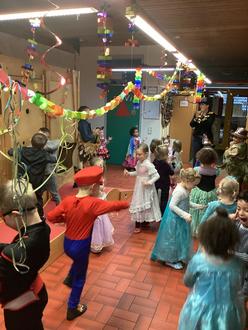 Das Feiern von Fasching gehört zum festen Bestandteil des Jahreskreises in der Krickenbacher Kita. So wurde auch dieses Jahr am Rosenmontag in der Kita mit allen Kindern Fasching gefeiert.