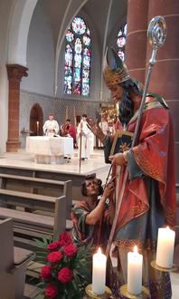 „St. Valentinus, bitte für uns“ klang es am vergangenen Sonntag durch die neugotische Valentinuskirche in Bann, denn die Pfarrgemeinde feierte ihr traditionelles Valentinusfest. Unter den Klängen der Orgel und des Kirchenchores, unter der Leitung von T. Schneider, zogen Kaplan Bernard und 14 Messdiener mit Fahnen und Kerzen feierlich in die Kirche ein.