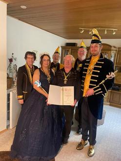 Noch am gleichen Wochenende machten sich die Vorsitzende Sonja Kreutz, der stellvertretende Vorstandsvorsitzende Dirk Halangk und das Prinzenpaar auf den Weg nach Bann um die Auszeichnung an Werner weiterzugeben.