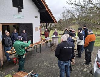 Am letzten Samstag veranstaltete der Obst- und Gartenbauverein Bann zusammen mit dem OGV Queidersbach wieder einen Baumschneidekurs in der Streuobstwiese im Tälchen. Trotz kalter Temperaturen waren 25 interessierte Hobby-Gärtner gekommen, um sich im Obstbaumschneiden weiterzubilden. Der OGV Bann hatte extra einen kompetenten Fachmann, nämlich Klaus Gundacker vom Kreisverband KL, eingeladen, der in anschaulicher Form die verschiedenen Schnittformen erklärte. An Ort und Stelle konnten dann die Teilnehmer das Gelernte gleich beim Baumschneiden selbst ausprobieren. Auch Infomaterial konnten die Zuhörer kostenlos mitnehmen. Nach dem Vortrag und der praktischen Arbeit konnte man sich im Vereinsheim gemütlich aufwärmen und noch beisammensitzen. (ge)