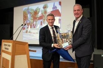 Landrat Ralf Leßmeister gratulierte der Verbandsgemeinde zum 50. Geburtstag mit einem hochwertigen Holzwappen des Landkreises in Holz. Seit der Gründung der Verbandsgemeinde im Zuge der Funktional- und Gebietsreform Anfang der 1970er Jahre könne man von einem absoluten Erfolgsmodell sprechen. Gemeinsinn und Innovationskraft hätten die VG Ramstein-Miesenbach groß gemacht und sie den Wandel der Zeiten mit immer neuen Herausforderungen meistern lassen.