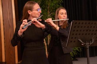 Alle noch lebenden ehemaligen Ratsmitglieder - es waren in den 50 Jahren insgesamt 184 Männer und Frauen - waren ebenso eingeladen wie die früheren und aktuellen Leiter der verschiedenen Einrichtungen sowie die ehemaligen und heutigen Abteilungsleiter der Verwaltung. Maria und Margarete Ottenbreit sorgten mit ihren musikalischen Beiträgen auf der Querflöte für den passenden festlichen Rahmen. Im Anschluss an die Feierstunde waren die Gäste noch eingeladen zum Plaudern und Gedankenaustausch beim schmackhaften Abendessen, das von der Gaststätte des CCR, "Die Bühne", in Buffetform zubereitet worden war.