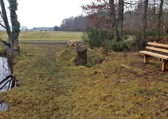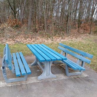 Die von Hans-Jürgen Brill wieder instand gesetzte Sitzbank "am Bunker" in Spesbach.