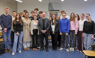 In seiner Begrüßung betonte Magin seine große Freude und Dankbarkeit über die Rückmeldungen und bezeichnete sie als „einzigartig im Schulbereich“. Es gehöre zu den eher seltenen Veranstaltungen, auch einmal mit Schülerinnen und Schülern ins Gespräch zu kommen, was ihm daher ein besonderes Anliegen sei. Dabei erläuterte er den Jugendlichen seinen eigenen Weg zum Priestersein, der vom „Herausfinden, welchen Weg Gott mit einem gehen möchte“, geprägt gewesen sei.