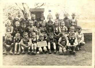 Dieses Foto der "Volksschule" Miesenbach von 1950 ist eines der Bilder, die beim Vortrag gezeigt werden.