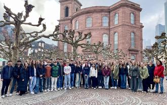 Ein spannender, lehrreicher und abwechslungsreicher Tag erwartete die gesamte 13. Jahrgangsstufe (MSS 13) des Ramsteiner Reichswald-Gymnasiums bei ihrer gemeinsamen Exkursion nach Frankfurt am Main. Früh am Morgen machten sich alle Schülerinnen und Schüler mit ihren Lehrkräften auf den Weg in die Mainmetropole. Vor Ort teilte sich der Jahrgang in zwei Gruppen: Während eine Gruppe das berühmte Naturkundemuseum der Stadt besuchte, erkundete die andere die Börse und bedeutende historische Orte Frankfurts.