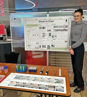 Hierzu arbeitete sie mit Bakteriophagen, das sind Viren, die Bakterien als ihre Wirtszellen sehr spezifisch infizieren. Dies stelle im Hinblick auf die zunehmend lebensbedrohliche Gefahr der Antibiotikaresistenzen eine biologisch vielversprechende therapeutische Alternative dar, um jene langfristig einzudämmen. „In meiner Arbeit wollte ich konkret nachweisen, dass bestimmte Phagen nur ganz bestimmte Wirtsbakterien infizieren können, da genau dies den entscheidenden Vorteil gegenüber den häufig sehr breit angreifenden Antibiotika ausmacht“, erläutert die Abiturientin. „Ich wählte deshalb zwei sich in ihrer Zellwandstruktur unterscheidende Bakterien - E.coli K12 und B.subtilis - sowie zwei sich in ihren Adsorptionsstrukturen unterscheidende Phagen - T4 und Phi29.“ Ihre Ergebnisse bestätigten ihre Hypothese der sehr engen Wirtsspezifität, da eine Infektion jeweils nur durch einen Phagen erfolgte, die jeweiligen Gegenversuche jedoch negativ ausfielen.
