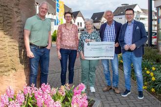 Spendenübergabe für die Hospizarbeit (v.l.): Bürgermeister Ralf Hechler, Dorothée Weis, Marita Altherr, Werner Ropte und Marcus Klein (Foto: St. Layes).