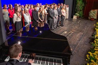 Die Abiturientinnen und Abiturienten des Jahrgangs 2024 beim gemeinsamen Schlusslied (Foto: Stefan Layes).