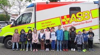Das Alles geschah sehr spielerisch und anschaulich anhand von Beispielen und Geschichten. Zum krönenden Abschluss durften die Kinder sich den Rettungswagen anschauen. Sowohl außen als auch innen wurde das Equipment gezeigt und erklärt. Das Highlight des Tages waren die Sirenen, die extra für uns angemacht wurden.