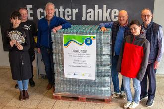 Gewonnen hat der Tanzsportverein eine Palette Mineralwasser und Einkaufsgutscheine für das E-Center. Die Hälfte spendet der Verein der „Deutschen Humanitären Stiftung“ (DHS). Deren Verwaltungsratsvorsitzender Uwe Breininger und Bürgermeister Ralf Hechler als Botschafter der Humanitären Stiftung nahmen die Palette mit den Wasserflaschen und die Einkaufsgutscheine im Wert von 150 Euro vom Vorsitzenden des Tanzsportvereins, Lothar Röhricht, entgegen und bedankten sich herzlich für die großzügige Zuwendung.