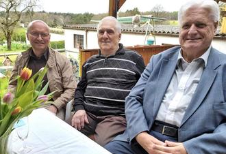 Für Landrat Ralf Leßmeister und den Kreisvorstand überbrachte Kreisbeigeordneter Dr. Walter Altherr herzliche Grüße und eine Präsenttasche, für die Ortsgemeinde Hütschenhausen gratulierte - auch im Namen der Beigeordneten - Ortsbürgermeister Matthias Mahl und überreichte dem Jubilar ebenfalls ein Präsent.