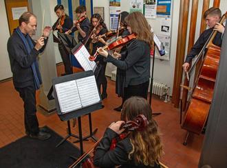 Musikalisch wurde die Feier von den „Chamber Strings“ der Ramstein High School unter der Leitung von Mario Bertoluzzi mit klassischen Musikstücken. Die Ausstellung ist noch bis zum 26. Mai in den Foyers des Rathauses vom Erdgeschoß bis zum 2. OG zu sehen.