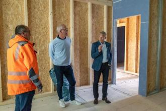 Neben den Bauarbeiten präsentierten Bürgermeister Hechler und Wehrleiter Preis den aktuellen Stand der Sanierungsmaßnahmen: Die neuen Fenster sind bereits eingebaut, die Fassade wird gedämmt, und im Aufenthaltsraum wird eine schallreduzierende Decke aus Naturfasern installiert.