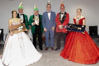 Am Neujahrstag haben die beiden Karnevalsvereine der Stadt Ramstein-Miesenbach symbolisch die Schlüssel der Stadt übernommen. Bei einem Empfang in der Lounge des Congress Center Ramstein überreichte Bürgermeister Ralf Hechler die überdimensionierten Schlüssel, die, wie der Bürgermeister bekannte, „eigentlich nirgends passen“, an die Prinzessin der Ramsteiner „Bruchkatzen“, Michelle I. und an Prinzessin Lena I. von den Miesenbacher „Vielläppchern“.