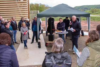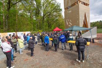 Der Kranichwoog in Hütschenhausen hat seit einigen Tagen einen imposanten Aussichts- und Beobachtungsturm. Das Bauwerk wurde bei einer Eröffungsfeier von Staatsministerin Katrin Eder, Staatssekretärin Petra Dick-Walther vom Wirtschaftsministerium, Landrat Ralf Leßmeister und Bürgermeister Ralf Hechler eingeweiht und der Öffentlichkeit übergeben. Zeitgleich wurde auch der „NATURA 2000 Erlebnisweg Kranichwoog“ freigegeben.