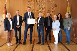 Mit großer Freude nahm Landrat Ralf Leßmeister den Zuwendungsbescheid zur Landesförderung des Projekts Gemeindeschwester plus von Sozialminister Alexander Schweitzer entgegen. Mit dieser Förderung kann das erfolgreiche Projekt Gemeindeschwester plus mit einer weiteren halben Stelle im Landkreis Kaiserslautern ergänzt werden. "Diese Form der Betreuung gibt den Hochbetagten organisatorische Hilfestellung, damit es ihnen möglich ist, auch weiterhin in ihrem gewohnten häuslichen Umfeld zu wohnen", betonte Landrat Leßmeister. Der Landkreis Kaiserslautern habe als Modellregion schon seit 2015 mit Andrea Rihlmann als Gemeindeschwester plus in den Verbandsgemeinden Landstuhl und Ramstein-Miesenbach Erfahrung sammeln können. Das Projekt läuft seither äußerst erfolgreich und wird hervorragend angenommen. Laut Kreistagsbeschluss ergänzt seit vorigem Jahr Stefanie Gluch als weitere Gemeindeschwester plus das Angebot in den Verbandsgemeinden Bruchmühlbach-Miesau und Weilerbach. "Wir freuen uns, dass der Einsatz von nunmehr zwei Fachkräften durch eine Ausweitung der bisher schon bestehenden Förderung des Ministeriums für Arbeit, Soziales, Transformation und Digitalisierung aus Mitteln des Landes Rheinland-Pfalz möglich ist."