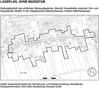 Der Ortsgemeinderat der Ortsgemeinde Hütschenhausen hat in seiner Sitzung am 23.04.2024 die Änderung des Geltungsbereichs, sowie die Veröffentlichung des einfachen Bebauungsplanes „Bereich Hauptstraße zwischen Eck- und Hauptstuhler Straße“ im Internet bzw. eine Auslegung zur Beteiligung der Öffentlichkeit gem. § 3 Abs. 2 BauGB beschlossen.