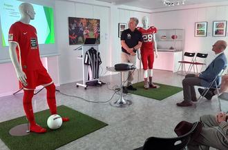 Im Rahmen der aktuellen Sonderausstellung „Football ≠ Fußball“ bot sich am Mittwoch vergangener Woche im Docu Center Ramstein eine der seltenen Gelegenheiten, aus erster Hand Einblicke in die Welt des American Football zu erhalten. Zu Gast war Torsten Nabinger, Football Schiedsrichter mit über 30 Jahren Erfahrung. Nabinger ist als Schiedsrichter der Kaiserslautern Pikes u.a. in der German Football League aktiv und hat bereits einige Finalspiele um die deutsche Meisterschaft begleitet. Genau der richtige Experte also, um dem Publikum einen fundierten „Crashkurs“ zur Geschichte des amerikanischen Volkssports und insbesondere zu dessen Regelwerk zu geben. Der Referent freute sich über reges Interesse und eine Vielzahl an Fragen, so dass eine angeregte Diskussion viele Unklarheiten und Mythen über den in Deutschland oft noch wenig bekannten US-Sport ausräumen konnte.