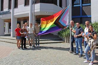 Flagge zeigen gegen Vorurteile und Intoleranz ist das dringende Ziel einer Gruppe Jugendlicher des Reichswald Gymnasiums, die im Rahmen des Beteiligungsprojekts „Zukunftspaket“ des Bundesministeriums für Familie, Senioren, Frauen und Jugend. Daher überzeugten sie Bürgermeister Ralf Hechler und 1. Beigeordneten Marcus Klein, auch an öffentlichen Gebäuden im Juni die sogenannte „Progress-Flag“ zu hissen. Sie ist eine Weiterentwicklung der Regenbogenfahne und gilt als Symbol gegen Homophobie und Rassismus. Der Juni gilt als „Pride Month“. Pride steht in der Bezeichnung des Pride Monats für Stolz und soll zum Ausdruck bringen, dass man sich für die eigene sexuelle Orientierung oder Geschlechtsidentität nicht schämen sollte. Im Zentrum der Aktion steht die Aufklärung und der offene Dialog über Probleme die auch heute noch schwule, lesbische oder transsexuelle Menschen haben. Dafür gibt es Angebote in ausgewählten Klassenstufen des Gymnasiums sowie Infostände zur Pause und auch beim Tag der Familie des Landkreises am Samstag in Ramstein.