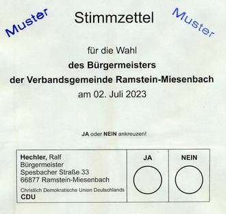 am kommenden Sonntag, 2. Juli, findet in unserer Verbandsgemeinde die Wahl des Bürgermeisters statt. Zur Bürgermeisterwahl tritt nur ein Kandidat an, der gewählt ist, wenn er mehr als die Hälfte der gültigen Stimmen erhält. Auf dem Stimmzettel können Sie „Ja“ oder „Nein“ ankreuzen. Ein Muster des Stimmzettels ist hier für Sie abgedruckt.