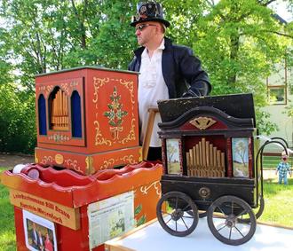 Die Idee, den Drehorgelspieler Billi Braun zum Sommerfest einzuladen, wurde einstimmig beschlossen. Billi Braun und seine Tochter waren von der Einladung sofort begeistert und brachten gleich zwei Drehorgeln, eine große und eine kleine, mit zum Fest der Kita. Die Kinder durften drehen und die Eltern konnten spenden. Es kam eine stolze Summe von 125,65 €uro zusammen. Die Kita rundete die Spendensumme mit einem Teil des Erlöses des Sommerfestes auf 200 €uro auf.