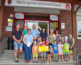 Susanne Wagner von CJD, verantwortlich für das MGH, sowie Bürgermeister Ralf Hechler, als Vorsitzender der Bürgerstiftung nahmen die Spende an und bedankten sich ganz herzlich bei der Kita Pinocchio und Billi Braun für die großartige Aktion. Wie Frau Wagner erklärte, soll das Geld für die Kinderferienbetreuung des MGH eingesetzt werden.