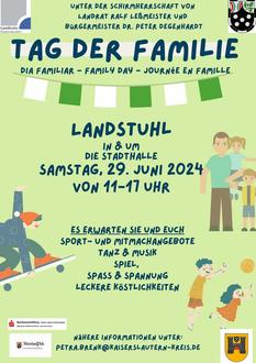 Spiel, Spaß und Unterhaltung: Der 3. Tag der Familie des Landkreises Kaiserslautern findet am 29. Juni von 11 bis 17 Uhr in und rund um die Stadthalle Landstuhl statt.