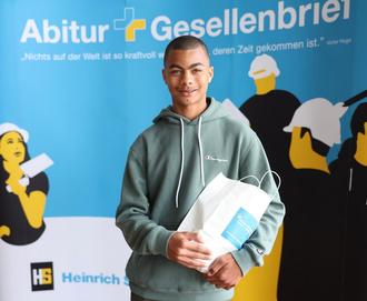 Julien Carter tritt selbstbewusst vor die Versammelten und übergibt die von ihm unterschriebene Ausbildungsvereinbarung. Als erster Schüler des Ramsteiner Reichswald-Gymnasiums (RWG) macht er sich auf den Weg, neben der schulischen Karriere seine Ausbildung zum Maler und Lackierer bei einem der Bildungspartner der Schule, der Firma Heinrich Schmid mit dem Stammsitz in Reutlingen - in der Westpfalz am Standort Rodenbach vertreten - in Angriff zu nehmen.