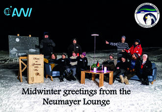 Das Mittwinterfest, der größte Feiertag in der Antarktis, wird gefeiert. Traditionell wird an diesem Tag eine XXL-Weinkiste geöffnet. Diese handgezimmerte Weinkiste wurde vom Präsidenten der Struktur-und Genehmigungsdirektion Süd (SGD Süd), Prof. Dr. Hannes Kopf, im August 2023 gemeinsam mit Weinhoheiten vernagelt und auf die 17.000 Kilometer lange Reise in die Antarktis geschickt.