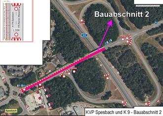 Ab kommenden Montag, 1. Juli 2024, wird die L 356 zwischen Ampelanlage zur K 9 und dem Kreisverkehrsplatz in Spesbach abschnittsweise für den Verkehr gesperrt. Die Arbeiten werden aus Gründen der Verkehrs-/Arbeitssicherheit in drei Bauphasen unter Vollsperrung ausgeführt. Für die Bauzeit der Gesamtmaßnahme sind etwa 7 Wochen geplant.