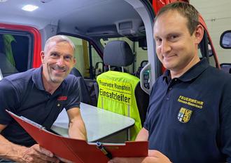 Eine moderne und schlagkräftige Feuerwehr muss nicht nur im Einsatz effektiv geführt werden. Die Planung und Durchführung der Ausbildung, das Führen der Mannschaft und vielfältige Verwaltungs- und Dokumentationsaufgaben fallen in das Aufgabengebiet des Wehrführers einer freiwilligen Feuerwehr. Nach zwölf Jahren im Amt übergab nun Matthias Hecktor diese verantwortungsvolle Aufgabe an Sören Scholtka. Hecktor wird weiterhin seine Funktion als stellvertretender Wehrleiter ausüben und will sich zukünftig weiteren Aufgaben innerhalb der Feuerwehr zuwenden. Daher wurde Sören Scholtka bereits im Frühjahr von den Männern und Frauen der Einheit Ramstein zum neuen Wehrführer gewählt und am Florianstag vereidigt. Wir danken Matthias Hecktor für die bisher geleistete Arbeit im Dienste der Allgemeinheit und wünschen Sören Scholtka eine glückliche Hand als Wehrführer der Feuerwehr Ramstein-Miesenbach