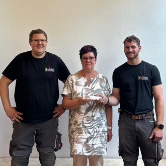 Die beiden Meister und Firmenchef Tim Jung (re.) übergeben die Anlage nach einer Einweisung an die Kita-Leitung Hill Hamm-Rittershofer.