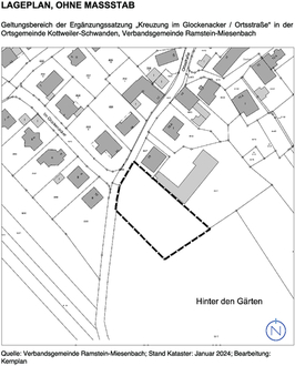 Der Ortsgemeinderat der Ortsgemeinde Kottweiler-Schwanden hat in seiner Sitzung am 13.03.2024 die Veröffentlichung der Ergänzungssatzung „Kreuzung im Glockenacker / Ortsstraße“ im Internet bzw. eine Auslegung zur Beteiligung der Öffentlichkeit gem. § 3 Abs. 2 BauGB beschlossen.