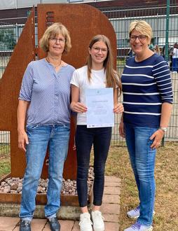 Lena Bauer (Foto: Mitte), Schülerin der achten Klasse des Ramsteiner Reichswald-Gymnasiums, wurde für ihre hervorragenden Leistungen beim Wettbewerb „Leben mit Chemie“ ausgezeichnet. Ausrichter des Wettbewerbs ist das Land Rheinland-Pfalz.