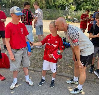 Einem Besuch im Fanshop folgte eine quasi private Autogramm- und Fotostunde mit der gesamten Mannschaft und mit Trainer Torsten Lieberknecht – viel Zeit also nahmen sich die Profis und die Verantwortlichen für die Schüler. Vor- und nachbereitet wurden die Exkursionen in Ramstein. Zu Gast dabei: Gerrit Schnabel, einst selbst Schüler in Ramstein, lange Jahre haupt- und nun nebenberuflich als Sportjournalist tätig und dabei für den 1. FC Kaiserslautern zuständig. Auch dies eine seltene Gelegenheit, hinter die Kulissen der Medienwelt zu blicken. Auch das gemeinsame Fußallspielen kam nicht zu kurz – ein bunt gemischtes Programm also, das allen in bleibender Erinnerung bleiben wird.