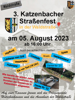 Geboren wurde die Idee des Straßenfestes bei Einführung der wiederkehrenden Straßenausbaubeiträge. Als bekannt wurde, dass die Waldstraße neben der Friedhofstraße eine der ersten Straßen sein wird, die im Zuge der kollektiven Beitragszahlung ausgebaut wird, wollten die Anwohner der Waldstraße Ihren Beitrag leisten. Mit einem Straßenfest zu Gunsten der Ortsgemeinde wurden bereits zwei Projekte umgesetzt, die das Dorfleben rund um die Waldstraße bereichern. Unter anderem zählt dazu eine neue Sitzgruppe für den Kinderspielplatz im Ortsteil Katzenbach.