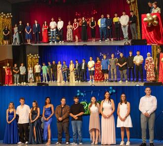 Geehrt wurden für die beste Abschlussnote in der 9c Galya Yosifova und Joshua Wallat sowie Lena Syriste für den besten Abschluss in der 9d. Beste Schülerin der Profilstufe II in der 10a ist Anastasia Mitrofanova, die dafür ebenso eine Auszeichnung der Verbandsgemeinde Ramstein-Miesenbach erhielt wie Elias Jeremy Gisbrecht aus der 10b, der mit einem Notendurchschnitt von 1,5 das beste Zeugnis vorweisen konnte und dafür auch vom Landkreis ausgezeichnet wurde. Eine Auszeichnung erhielt Elias auch für seine Leistungen in Physik und für seine Halbjahresarbeit im Wahlpflichtfach. Letztere Auszeichnung ging auch an Finn Keck aus der 10b.